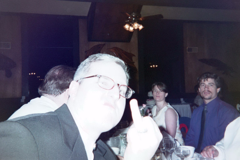 Sean, hamming it up for his new bride. ...either that or looking for a soul kiss...